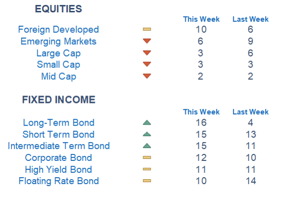 In fixed income, Long-Term Bonds climbed to the top of the leaderboard as investors sought safety, driving the 10-year Treasury yield below 4% for the first time since November. Short-term bonds also remain resilient, while floating-rate and high-yield credit lagged in the flight to quality.
