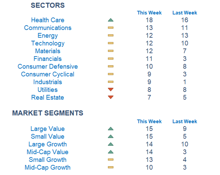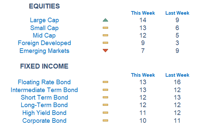 Our Newton model is showing a more positive outlook this week. Equities improved across Capitalizations and Foreign Developed. Fixed Income remains steady and consistent, while Equity markets struggle with volatility. Healthcare continues to be the most attractive sector with Communications and Energy remaining not far behind. In terms of segments, Value and Growth have fluctuated back and forth depending on the week. As of now, most assets have gained traction since last week with Large Value and Small Value the strongest.