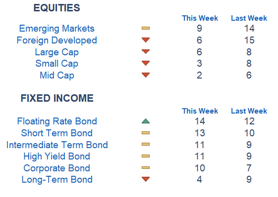 According to our Newton Model, all regions were hit hard, but Emerging Markets continue to lead. Foreign Developed is now tied with U.S. Large Cap as that area has softened over the last few weeks. Sector-wise, Communication Services has surged to the top of the leaderboard, staging a sharp comeback, while Materials and Industrials have slid to the bottom. In fixed income, Short-Term Bonds and Floating Rate remain the strongest areas, offering yield with reduced duration risk. In contrast, long-term Treasuries and Corporate Bonds continue to struggle.