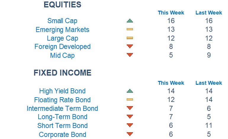 Our Newton model shows little change in market segment preferences after last week’s mostly neutralizing price action. Small caps continued to show momentum, while emerging markets and large caps also showed some improvement. Sector moves stood out more. Utilities and energy attracted buying pressure and climbed the rankings. Defensives, however, lagged and now sit at the bottom with the lowest possible score.
